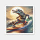 Um crocodilo vestindo óculos de sol e troncos de natação floral dirige habilmente um prato de superfície em uma onda brilhante sob um sol grande