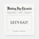 This modern, newspaper theme luncheon paper napkin looks like a vintage newspaper with regal script and simple typography. It's easy to customize with the wedding date, start time, ceremony location and groom and bride's names. You can have some fun adding your sense of humor to it for guests to enjoy in the wedding reception buffet line. The newspaper name and celebratory phrases can be kept as is or you can put them in your own words. Visit the Wedding Collection on this page to see the suite designed to help you create a unique wedding experience. Congratulations from Home Together! NOTE: The French, "bon appetit" translates to "enjoy your meal".