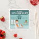 The scene is set against a teal clinic wall with a window and wooden shelves holding small bottles and a plant, creating a cozy little animal clinic. Above the illustration, a large paw print highlights the child’s age, making each napkin personal and playful. The back of the napkin continues the theme with a teal paw print pattern.