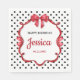 Elegant red bow and ribbon with polka dot background, birthday paper napkins, change the text to anything you want when ordering