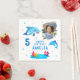 Cute Dolphin Sea Animals Photo Birthday Party Napkins. Cute smiling dolphins in cartoon style. The photo is in brushstroke frame. Add your photo and customize the text on the napkins. Fun and cute birthday napkin for a girl or a boy celebration.