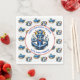 Blue and red nautical oceanic themed whales, sharks and anchors birthday party napkins.