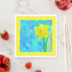 Este guardanapo de papel lança uma colagem digital composta por várias camadas de pinturas, texturas e digitalizações. O ensolarado daffodil "pop" do fundo azul. Bolinhas brancas e amarelas cheias formam uma moldura como um toque final.