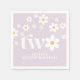Dois! Os guardanapos de segundo aniversário inspirados na Retro com margaridas do estilo 70 e fontes e cores de som.