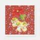 Dançando Anjos Bebês pendurados em uma flor de Poinsettia com ouro e flocos de neve brancos caindo em guardanapos de férias.