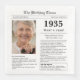Deseje feliz aniversário a alguém nascido em 1935 com este guardanapo de aniversário único no estilo de jornal, incluindo uma foto do destinatário e uma coleção de fatos divertidos e notícias do mundo do ano do seu nascimento. Projetado para se assemelhar a um jornal vintage em estilo clássico preto e branco. Uma maneira fofa e divertida de celebrar os anos 30!