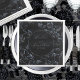 Um guardanapo romântico preto e prateado jantado com uma vinha verde preta e dourada com os seus primeiros nomes centrados num disco preto escrito à mão em prata com a data numérica do casamento. Um clássico guardanapo moderno janto de casamento.