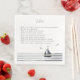 Elevem sua recepção de casamento com esses charmosos guardanapos jantados de papel, enfeitiçados com a mesa sobre o casal feliz. Apresentando uma design minimalista com um veleiro em nuvens de cinza azulada e listras náuticas clássicas, esses guardanapos exuberam a elegância eterno do estilo litoral de Nova Inglaterra. Perfeito por adicionar um toque pessoal à decoração da mesa enquanto entretem seus convidados.
