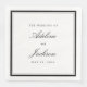 Esses guardanapos de casamentos apresentam uma simples borda de cinzas pretas e carvões que enquadram nomes de casais elegantes e fáceis de personalizar e texto de datas de casamento com muito espaço branco leve e arejado para aquele olhar sofisticado em linha com o novo estilo tradicional do milênio.
