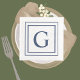 Clean, modern white background with double ribbon square border design and customizable monogram in the center. Double sided design. Personalization options available for select products