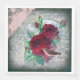 Rosas vermelhas florais lindas, grandes, com um colar fino e cor-de-rosa no canto superior esquerdo. Impressão de jornal e antiga base de propaganda por baixo. Esse design botânico em apuros é para um projeto menor de dissociação.