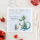 Estes guardanapos encantadores apresentam um tema clássico de histórias de folclore e conto de fadas sobre um fundo de cor azul macia. Uma ilustração de um grande dragão é ilustrada na parte inferior esquerda. Um cavaleiro giro em uma armadura brilhante está na frente dele com sua espada. A frase "Uma vez por vez" é impressa no topo em uma fonte de ouro branco.