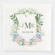 Estes guardanapos jantados são perfeitos para a sua festa de noivado, chá, janto de ensaio ou casamento. A crista com rosas cor-de-água, cor-de-rosa pincelada, azuis empoeirada e branca, na folhagem verde, é impressionante. E, suas iniciais e data/casamento de festas em duas tonalidades de coordenação do verde em uma bela fonte tradicional, mas moderna, é a cobertura do bolo.