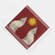 Um gráfico colorido de uivar coiotes nas cores e estilo da arte tradicional sudoeste.