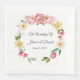 Este guardanapo de papel de casamento é mostrado em uma adorável impressão floral de cor d'água, de peonias e narcisos, o texto é mostrado em uma cor de cinza de ardósia. Personalize este item alterando o texto do exemplo e colocando suas informações nele. Imagem de ações. vecteezy.com