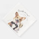 Apresentamos a nossa encantadora e cativante Guardanapo Personalizável de Aquarela do Charmoso Corgi Galês de Pembroke Garçom - uma peça de declaração perfeita para os seus eventos inesquecíveis! Este guardanapo encantador apresenta uma caprichosa obra de arte pintada à mão em aquarela de um feliz Corgi Galês de Pembroke vestido de garçom, exclamando 'Drinks on me!'. Com seu design imaginativo e caloroso, este guardanapo é um iniciador de conversas que adiciona um toque de diversão ao seu casamento, aniversário ou qualquer outra ocasião especial.