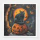 Guardanapo De Papel De Jantar Gato Negro Spooky do Halloween num Jack O' Lantern