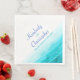 Lindos guardanapos de casamento com ondas gráficas sobrepostas e pintura azul marinho em tons de aqua, azul e branco. Um grande complemento pessoal para as mesas do seu casamento. Personalize com seus nomes e data de casamento. Um lindo guardanapo de mesa de casamento contemporâneo inspirado na praia, na costa ou no mar, apresentando um mar estilizado e único, pintado à mão em aquarela, sobre fundo branco. Perfeito para um casamento moderno de praia, oceano ou náutico. Desenhado e pintado exclusivamente por Sarah Trett www.mylittleedenweddings.com