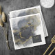 Seus sonhos estão finalmente se tornando realidade e este design abstrato de tinta alcoólica que flui define o tom perfeito para o maravilhoso casamento que você sempre imaginou. Em tons de carvão a preto, acentuados com ouro brilhante, o guardanapo de papel coordenador mostrado aqui fornece uma modelo para adicionar facilmente suas iniciais, data do casamento e obrigado sua mensagem. Procure ID988 para ver outras peças neste conjunto de casamento coordenado.