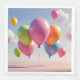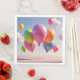 Colorful balloons float upwards towards a blue sky on this pretty paper napkin.