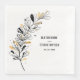 Um caule rústico com tendências desenhado à mão com folhas brancas e douradas pretas e minúsculas amoras pretas com seus nomes e data numérica em uma lista rústica de blocos desajustada para o centro direito.