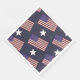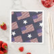 Que a bandeira acene com este guardanapo de papel patriótico. O fundo é azul com estrelas brancas e bandeiras coloridas dos Estados Unidos com as palavras do prometido de fidelidade escrito nas listras vermelhas.