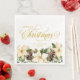 Personalized Joyful Christmas White Poinsettia Napkins. Beautiful Golden Christmas Typography and White Poinsettia Christmas floral, berries and pine cones arrangement.