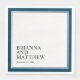 Um design clássico moderno para casamentos ou noivados, este guardanapo de papel tem um quadro duplo em azul marinho com um fundo branco. Os nomes da noiva e do noivo e a data do casamento são mostrados no canto inferior esquerdo da design. O texto justifica-se por um efeito contemporâneo. Personalize o texto com seus nomes e data. Nota: estes guardanapos de papel estão disponíveis em 3 tamanhos: tamanho janto (mostrado aqui), tamanho do almoço e tamanho do coquetel.