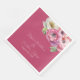 Estes guardanapos florais românticos apresentam um elegante fundo rosa-pincelado com flores brancas-d'água e ranóculus cor-de-rosa. Um delicado buquê de ranúnculo e verde é ilustrado no topo. Os nomes das amostras de um novo casal e a data do casamento são impressos na parte superior. Você pode personalizar os guardanapos para incluir seus próprios nomes personalizados ou texto.