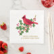 O guardanapo de papel de Natal com ilustração de um cardeal vermelho sentado num galho sagrado com bagas. O texto diz "Feliz Natal e Feliz ano novo!". Excelente para a sua festa de Natal com cores tradicionais vermelhas, verdes e douradas.