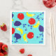 Este design de guardanapo de papel tem quatro frutas coloridas diferentes. Os desenhos de maçã, banana, mirtilo e uva são brilhantes e divertidos.