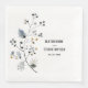 Uma tenda mão rústica desenhada em folhas sagradas e empoeiradas, azuis, em caules com bagas, seus nomes e data numérica em caracteres rústicos.