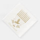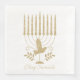 Um guardanapo de papel Hannukah, de ouro moderno e branco, com uma bela menorah dourada, com uma pomba voadora sobre fundo branco.