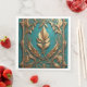 Beautiful gold leaves against a teal background cover this Standard Dinner Napkin.