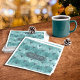 Este guardanapo de papel apresenta um padrão tendencial de silhuetas da cabeça de cervo com curvas, setas estilizadas e pequenos flocos de neve em negros em um fundo azul de vigia e efeito texturizado. Foi fornecido o texto "Feriados Felizes" opcional e um rótulo para adicionar o seu nome e/ou outro texto. Procure ID861 a ID864 para ver opções de cores adicionais e outros produtos neste conjunto de design de Natal moderno.