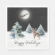 Bonito boneco de neve, veado-roxo e Papai Noel em lua de lua com camada de floco de neve. A cor do céu pode ser alterada. O texto é editável.