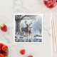 Buck e um pé de pomba graciosamente ao lado de uma lagoa gelada tranquila cercada por uma paisagem vitícola