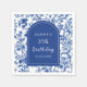 Este lindo e bolsa mensageifesta de aniversario elegante guardanapo apresenta um antigo padrão de Chinoiserie azul. O texto combina o script manuscrito e as fontes serif para uma aparência na moda e moderna. Isto é perfeito para uma primavera ou festa de aniversário de jardim de verão.