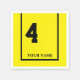 Personalizados com seu nome ou nome de evento, esses guardanapos serão um toque único e brilhante para sua festa de derby ou qualquer festa de corrida de cavalos. Este desenho personalizado é inspirado por cobertores de sela de cavalos de corrida ou tecidos de sela, tal como as cordas vestem nas grandes corridas de cavalos. Disponível em vários tamanhos. Misture e combine cores diferentes para coquetel, almoço e jante guardanapos para um toque muito divertido. Escolha sua cor ou combinações de números favoritos: número da casa, código de área ou apenas seus números favoritos de sorte. Fundo amarelo com sotaques pretos. Estilo tradicional para o cavalo número 4.