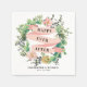 Este guardanapo apresenta uma coroa de cacto decorativa com um cacto de pera picante, uma flor rosa. No centro, diz "feliz para sempre" em uma fonte de serifa negra. Você pode personalizar com seus nomes e data de casamento. As cores incluem verde, rosa, branco e preto.