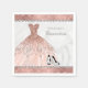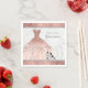 Sirva seus hóspedes em estilo com esses elegantes guardanapos de rosa de quinceañera com um vestido brilhante em ouro rosa com saltos reluzentes entre uma borda de diamante e uma brilhante banda de ouro rosa. O fundo é uma seda branca macia. Escrito elegante em cinzas escuras para detalhes da festa. Fácil de personalizar com opções personalizadas.