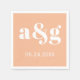 Típografia de iniciais brancas no guardanapo de casamento de pêssego de coral. Coordena-se com a nossa coleção de flores oleandro Vintage.