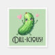 A delightful cartoon-style illustration of a Kaiwi pickle, beaming with a bright, happy smile and paired with the playful pun “Dill-icious.” This irresistibly cute veggie is bound to capture hearts and charm audiences everywhere.