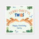 Frente de segundo aniversário de dinossauros engraçada com esquema de cor azul e laranja verde e tema safari. Personalize-o com os detalhes do evento. Design de Unisex para um menino ou menina.