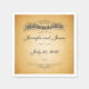 Os guardanapo de papel do casamento rústico de papel do vintage com a palavra "casamento" no vintage typeset imprimiram (em um fundo de papel velho do gráfico impresso) com flourishes. Adicione seus nomes dos noivos, wedding a data. Projete pelo © de Elke Clarke. Uma maneira elegante de vestir acima sua recepção de casamento. Use os alertas do modelo para mudar os nomes da amostra e a data do casamento.