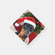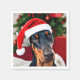 Doberman bonito vestindo um chapéu de Papai Noel.