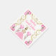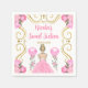 Este doce guardanapo apresenta uma elegante estrutura de ouro, uma bela princesa com cabelo louro e um vestido rosa, flores e um balão. Isto é perfeito para uma doce festa de aniversário de dezesseis.