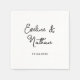 Estes guardanapos de casamento ou chá de panela, simples e na moda, preto e branco apresentam tipografia de script vintage com seus nomes. Um olhar elegante e clássico minimalista que ainda é único e contemporâneo.