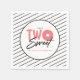 Ela é DOIS guardanapos de papel de segundo aniversário. Rosquinha cor-de-rosa-branca com aspersores ouros, design de tipografia rosa-tenda e preta com padrão de faixa preta de coordenação