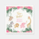 Os guardanapos de aniversário de safari super doces para os seus sequestros de "DOIS WILD", segunda comemoração de aniversário! Macaco bonito, zebra listrada, leão saltitante, elefante aspergaminho e girafa curiosa juntam-se à festa :) As flores da selva cor-de-rosa claro e escuro são emparelhadas com folhas e samambaias tropicais. Perfeito para o segundo aniversário da menina!